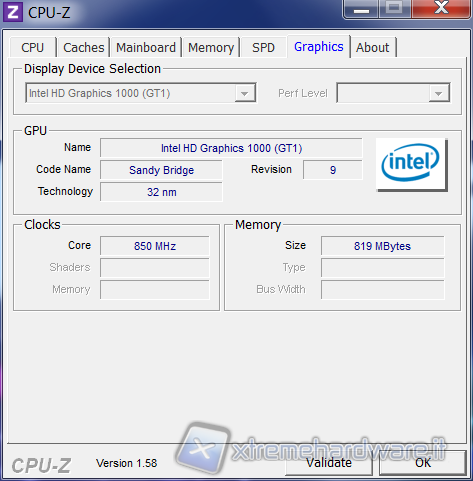 La frequenza della GPU Integrata è di 850MHz ma, stando al datasheet Intel, è in grado di raggiungere i 1100MHz in caso di necessità. Ovviamente non è una scheda grafica in grado di gestire sessioni di gaming o di rendering 3D di alto livello.