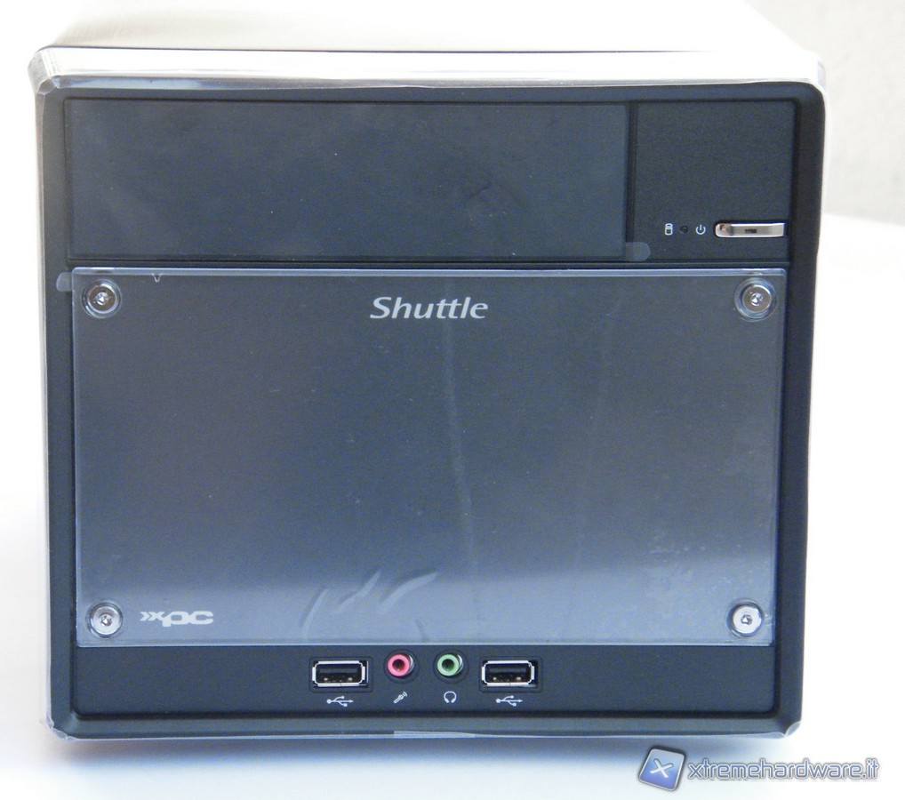 Il prodotto che ci ha mandato Shuttle si presenta con un'estrema cura nella realizzazione. Il prodotto è costituito da un parallelepipedo da 13,3 litri, le cui dimensioni sono di 32,5x21,5x19 cm (LWH). L'intero mini PC è costruito in alluminio, il frontale da 1mm è inoltre verniciato di colore nero, l'alluminio è rifinito con un effetto di tipo spazzolato come anche le pareti laterali e superiori.