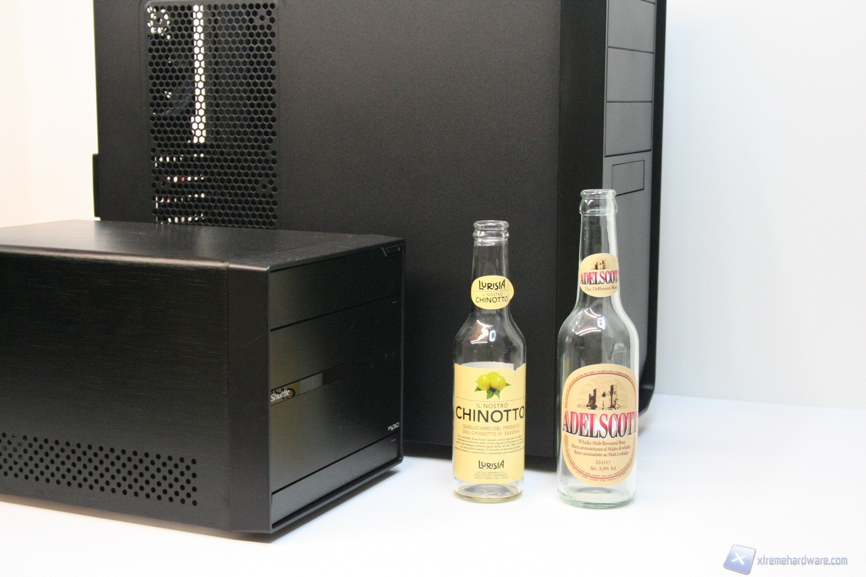 Abbiamo testato il prodotto Shuttle con una CPU Intel Sandy Bridge-E, modello i7-3930K dotata di sei core e di tecnologia Hyper Threading, Questo processore è dotato di tecnologia Intel turbo boost che varia la frequenza di funzionamento da 3200 MHz a 3800 MHz. Per ragioni di compatibilità vi mostreremo delle fotografie sia con una NVIDIA GTX480, che ricordiamo richiede 42A sulla rail da +12V, e con una AMD HD5450, scheda passiva dai consumi davvero modesti; ricordiamo che i test grafici su piattaforme del genere sono alquanto inutili, per via del fatto che le performance di un dato modello di VGA sono relative all'intera piattaforma, che cambiando ogni volta per le soluzioni shuttle implica che i test non possano essere comparabili. Se poi consideriamo anche le diverse release driver ed il differente hardware utilizzato, si capisce che tutto ciò è molto relativo. Abbiamo utilizzato però la GTX480 per eseguire alcuni test diretti, al fine di mostrarvi il comportamento reale e potenziale di questo sistema. Al fine di fornirvi una misura realistica, verranno monitorate anche le temperature interne, cercando di comprendere anche se possano esseri problematiche a livello termico.