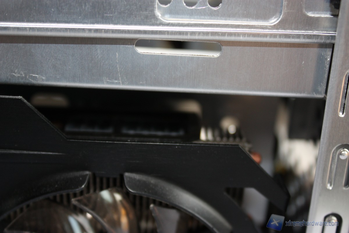 P.S.2. Ricordiamo che e' possibile installare all' interno dello Shuttle SZ87R6 schede video di fascia alta ma per motivi di spazio e' consigliabile utilizzare solo modelli Reference, infatti come possiamo vedere dalle immagini a seguire l'ínstallazione di schede video Custom non permette la completa e funzionale installazione della stessa.