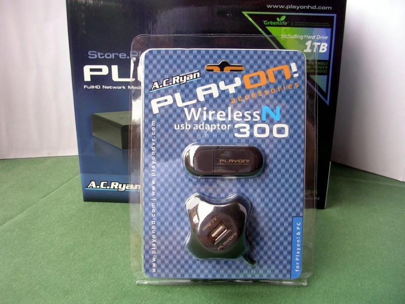 In redazione è giunto anche il kit wireless dedicato (costituito da chiavetta USB con prolunga e cd per i driver) che permette al lettore la condivisione di qualsiasi tipo di file in rete e l'accesso a internet con la possibilità di utilizzare anche il client BitTorrent. E’ importante sottolineare il fatto che la chiavetta usb può funzionare tranquillamente su qualsiasi pc per accedere alla rete come una comune penna Wi-fi. E’ inoltre configurabile come access point e non è quindi vincolata al solo utilizzo con il Playon!HD.