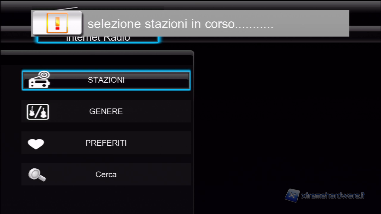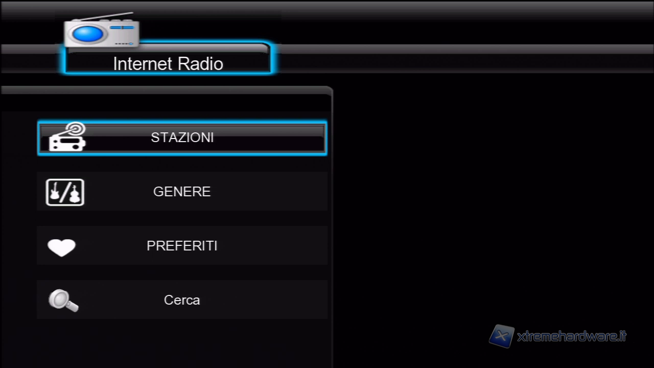 Il menu è semplice e diretto; appena acceso si hanno a disposizione tutte le risorse divise per SORGENTE: