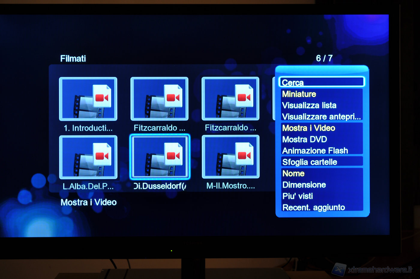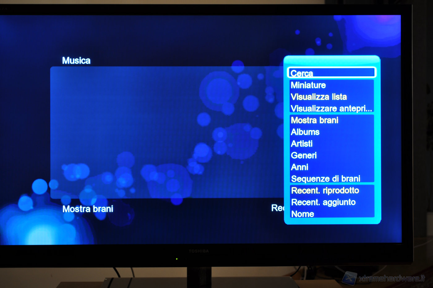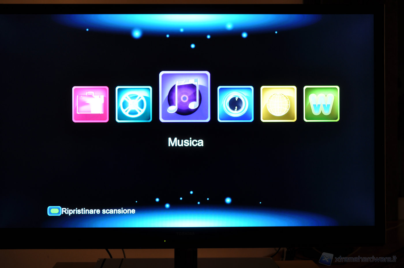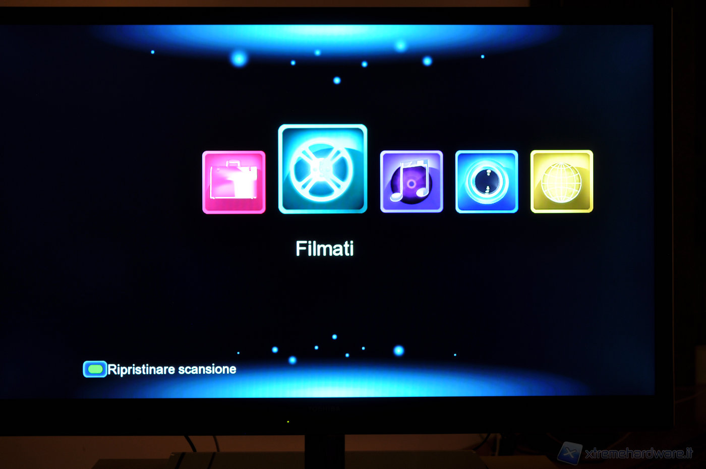 Le altre cartelle raccolgono invece immagini, musica e film individuati tra i vari dispositivi collegati al media player, tale operazione di indicizzazione viene effettuata non appena colleghiamo una nuova periferica di storage. In questo modo avremo sempre un’ampia libreria in cui cercare i nostri contenuti multimediali.