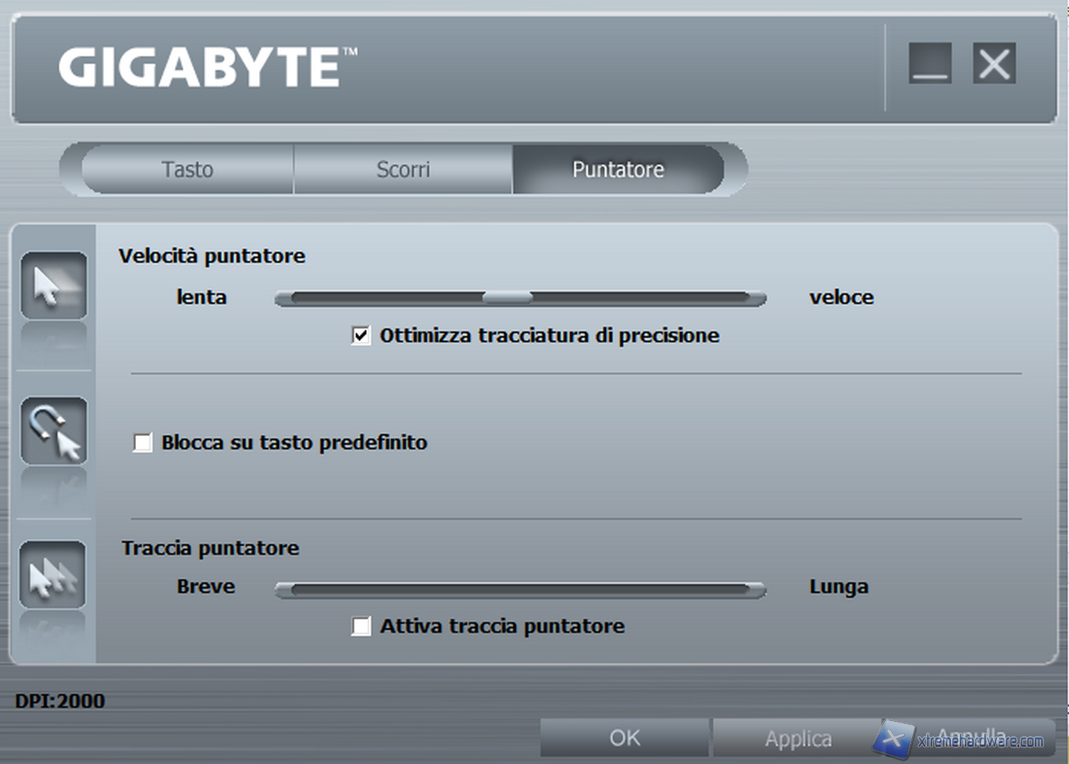 Le altre tab non offrono impostazioni di particolare impatto in quanto sono presenti anche nel driver base di Windows: possiamo regolare lo scroll e configurare alcuni parametri del puntatore.
