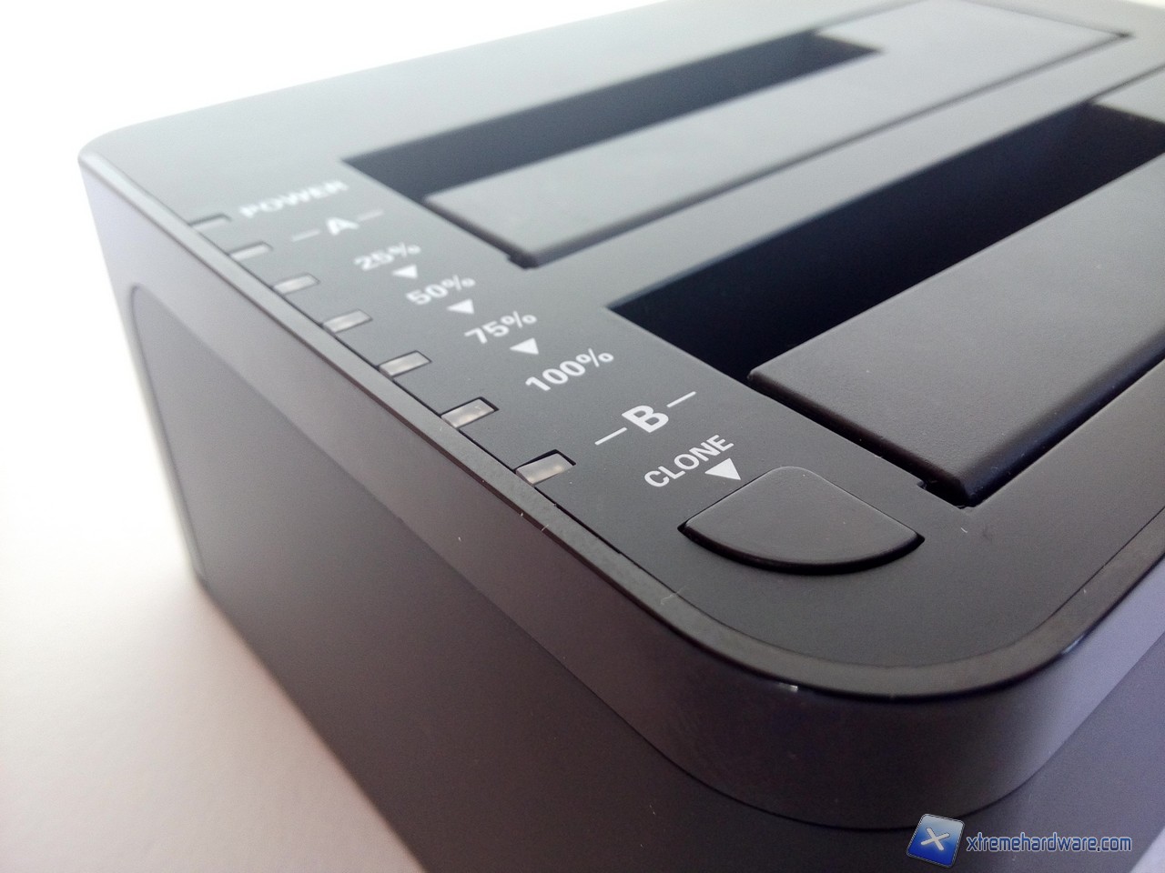 Chiudiamo con qualche riga dedicata alla funzionalità di offline cloning. Come detto in precedenza, questa feauture permette di copiare letteralmente l’intero contenuto di un disco sorgente su un disco destinazione, marcati con A e B. Ovviamente il disco destinazione deve essere come minimo delle medesime dimensioni del disco sorgente, esattamente come avviene quando si masterizza un CD o un DVD. Clonare un hard disk tramite questa docking station è estremamente semplice, una volta lanciato il processo mediante gli appositi tasti fisici (la sequenza corretta è illustrata nel piccolo manuale fornito in dotazione) basterà attendere per un periodo proporzionale alla quantità di dati che vanno clonati. Il processo di cloning può durare anche parecchio tempo (ore) ma sarete sempre informati sullo stato del trasferimento tramite i LED di notifica, arrivati al 100% ovviamente la clonazione sarà completata e potrete godervi i contenuti del vostro hard disk.