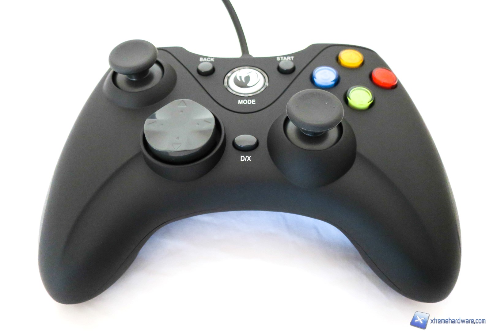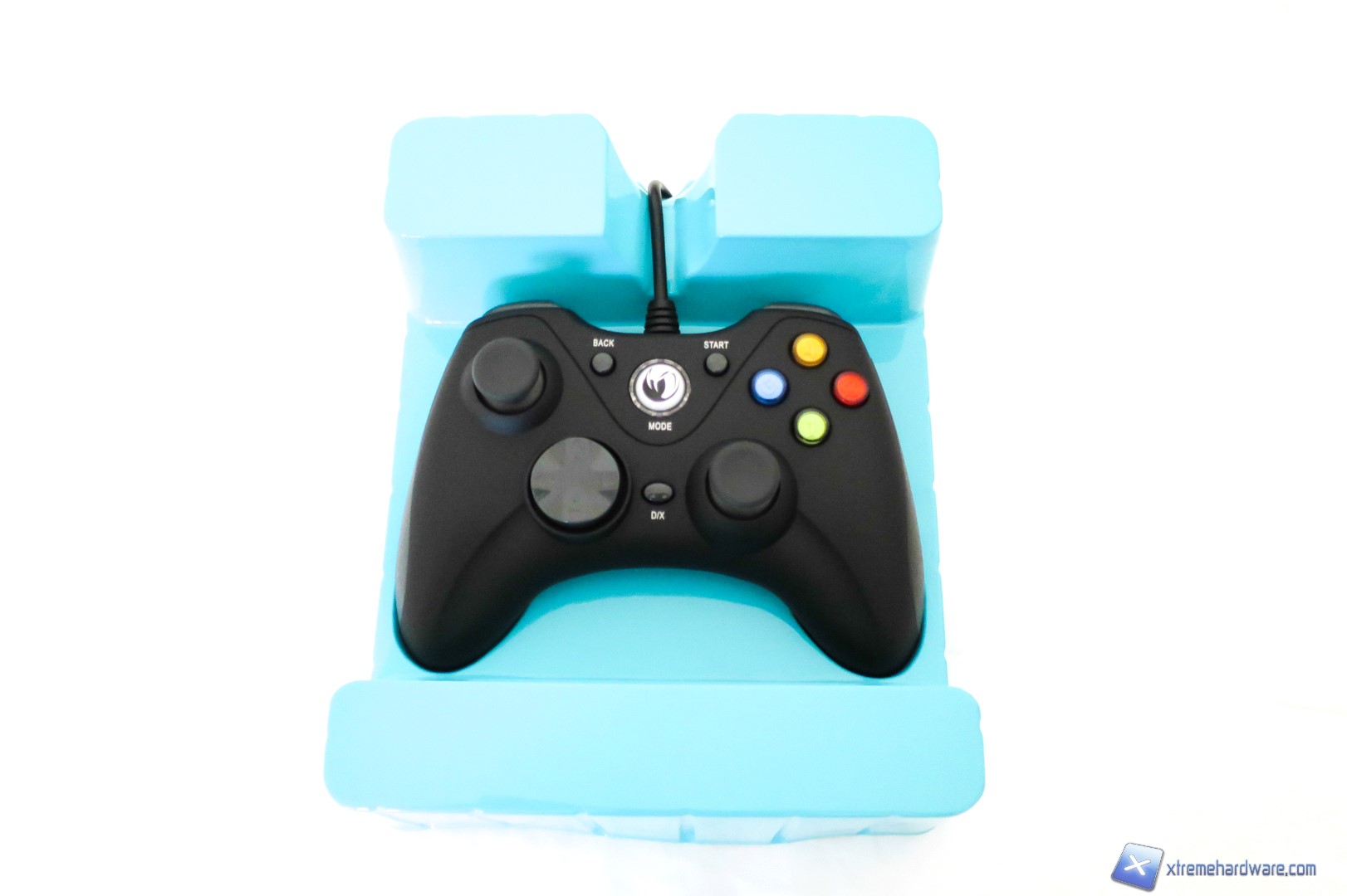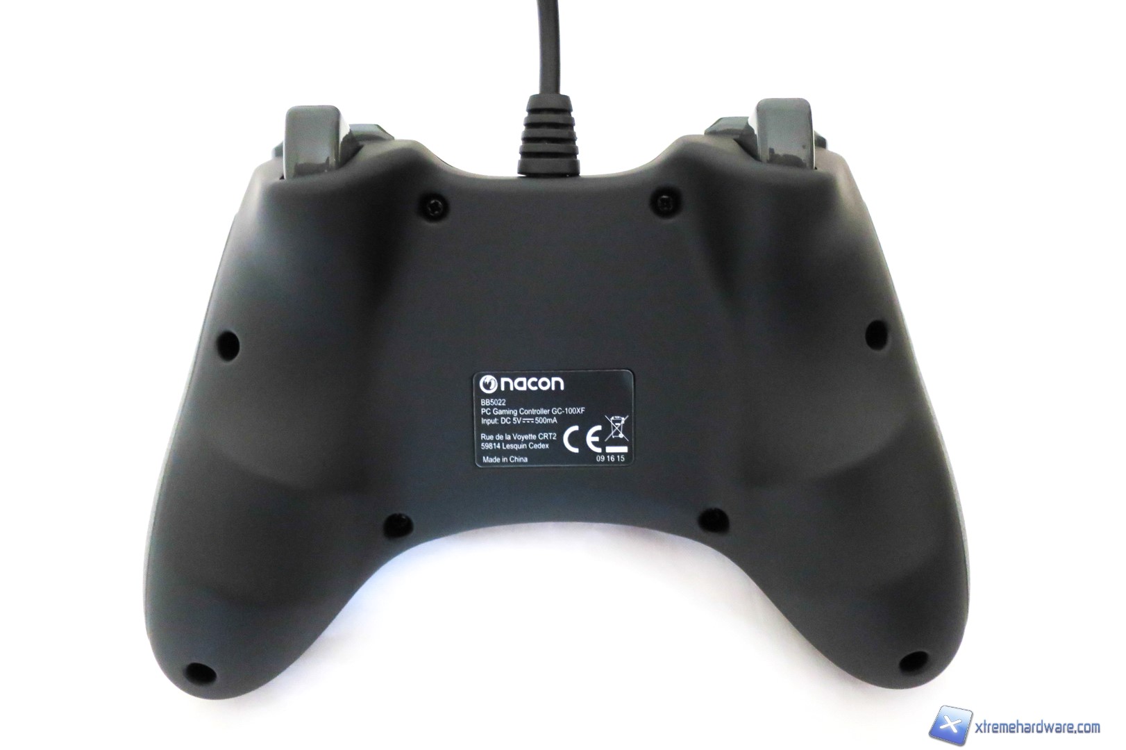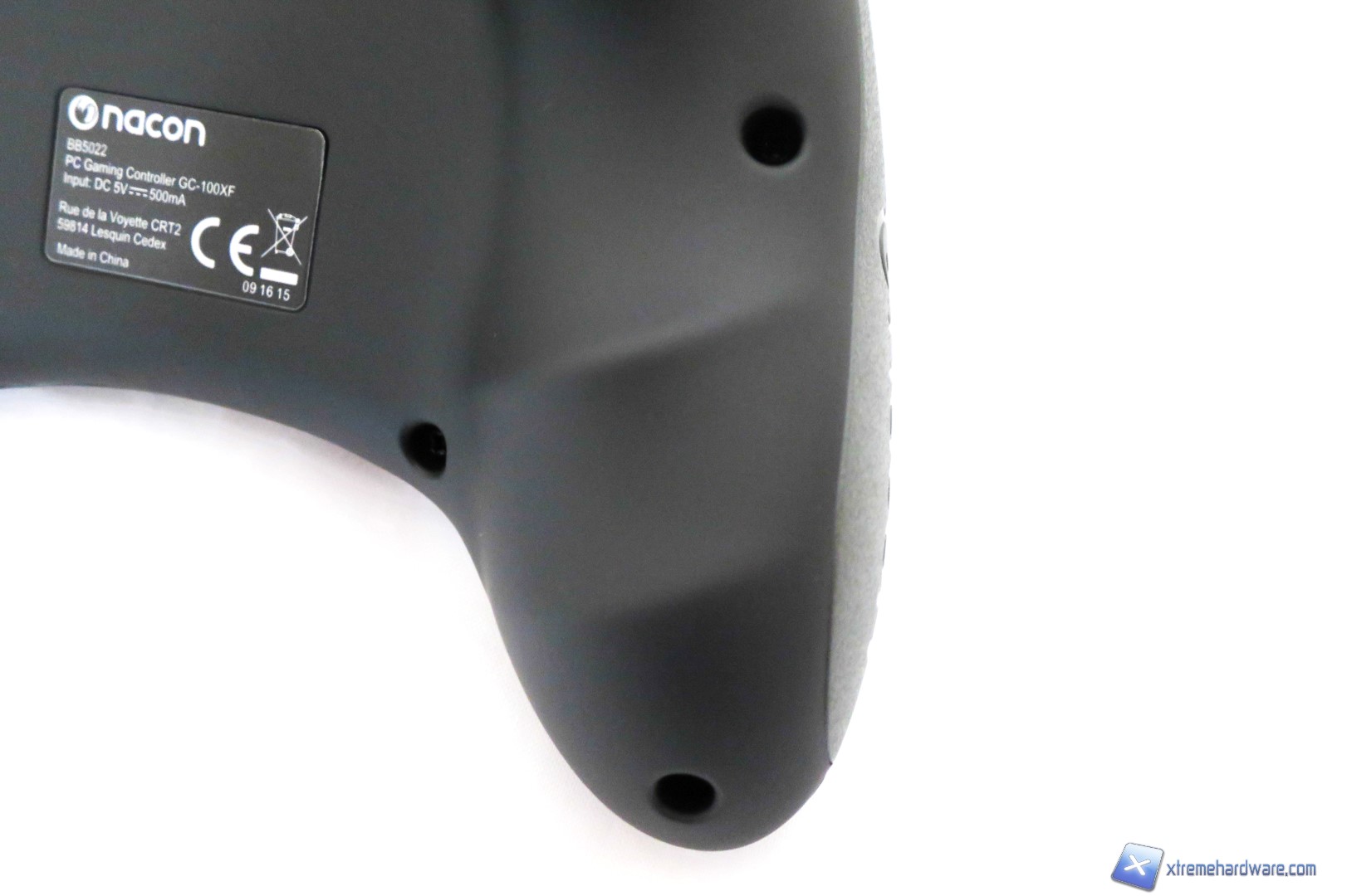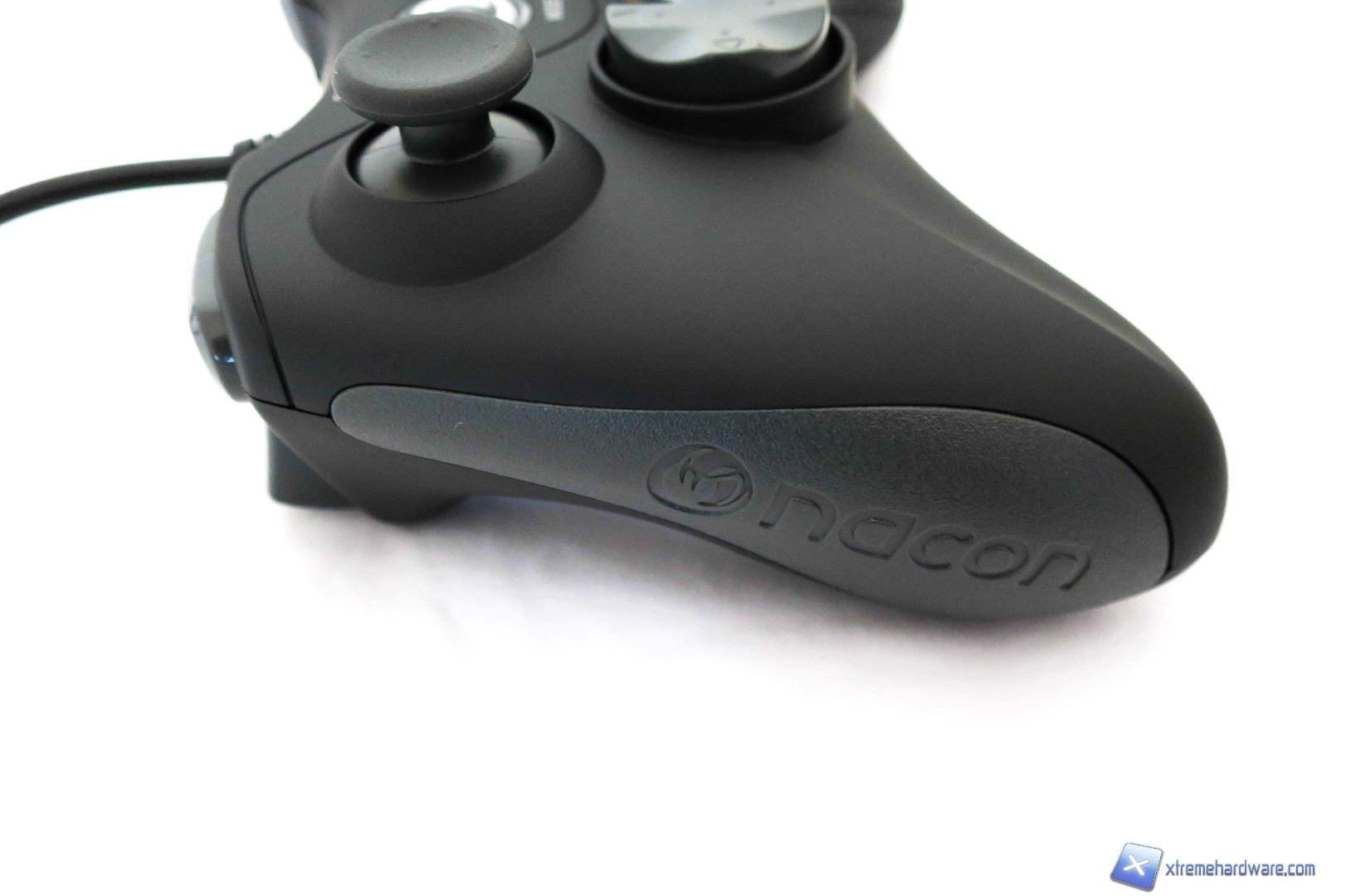 Ad una prima analisi del Gamepad di Nacon, chiunque potrà immediatamente dire “Questa è la copia del controller della XBOX/PC” ed infatti non neghiamo che il design e le forme principali così come la struttura siano le medesime. Ricordiamo che difficilmente troveremo in commercio Gamepad con forme diverse salvo particolari decisioni del brand produttore, questo perché la forma studiata tempo addietro da Microsoft è risultata vincente tanto che ormai la maggior parte degli utenti giocano con Controller Microsoft in versione Wireless o Wired a seconda delle esigenze personali. Dunque Nacon, come anche altri brand di periferiche compatibili, hanno voluto sfruttare a loro vantaggio questa situazione per creare controller che potessero essere valido sotto l’aspetto ergonomico e del prezzo. Infatti, molto spesso i controller compatibili hanno prezzi leggermente inferiori ad un controller originale. Tornando comunque all’analisi del Gamepad, abbiamo una classica colorazione nera per la struttura completamente in plastica che contrasta con gli inserti laterali in gomma di colore grigio (che vedremo nelle prossime immagini) ed i tasti colorati classici del Controller di Microsoft. Nella parte frontale del Gamepad di Nacon abbiamo dunque un layout e una disposizione dei tasti identici al Controller di Microsoft, fatta eccezione per il tasto con il logo Nacon (che servirà anche come indicatore visivo per le due modalità), che si illuminerà di blu una volta collegato al PC, ed il tasto per lo switch delle modalità DirectInput8 e Xinput. Inoltre, anche il Nacon GC-100XF è caratterizzato da due levette analogiche, un pad digitale, il tasto di switch modalità, i quattro classici tasti colorati ed infine il tasto Back e quello Start oltre che il tasto con logo illuminato per il riconoscimento in game. Non abbiamo dunque differenze sostanziali rispetto al Controller ufficiale di Microsoft.