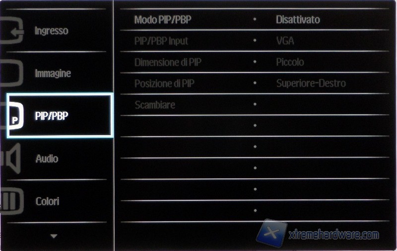 Il secondo tasto di accesso rapido, MultiView, permette di gestire le funzioni quali PiP e PbP, ma vista l’ampia superficie (sia fisica che lavorativa) in alcuni casi sarebbe potuta essere utile la possibilità di poter visionare contemporaneamente più di due sorgenti video distinte. Il terzo tasto rapido può essere scelto dall’utente tra quelli disponibili. L’ultimo permette di accedere al menù completo che può essere analizzato grazie all’immagine presente nel manuale.