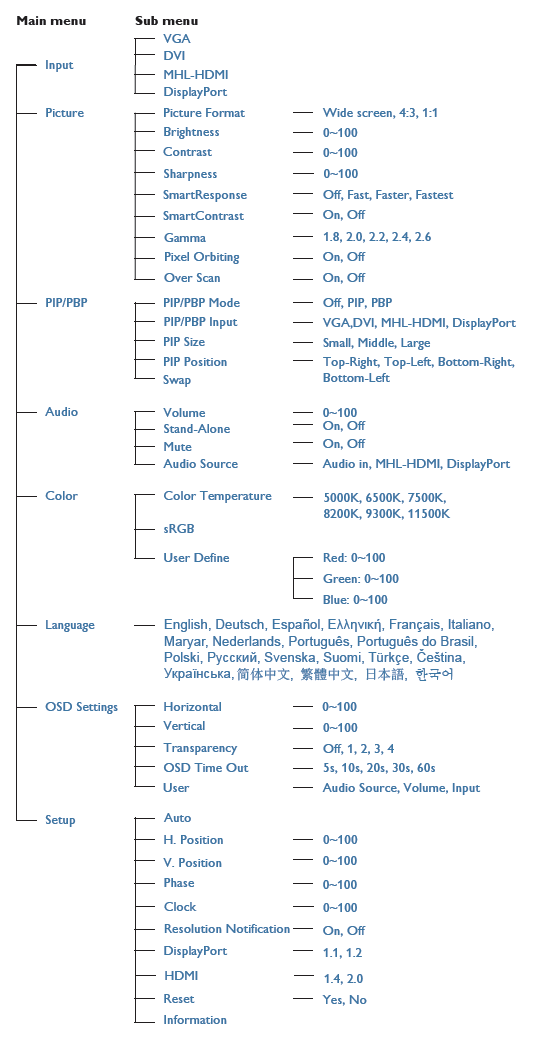 Funzioni del menù OSD