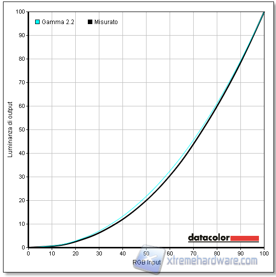 Con le impostazioni di fabbrica registriamo una luminosità di 316 cd/mq, luminosità del nero di 0,44 cd/mq, contrasto di 720:1, temperatura del bianco di 5900K e gamma del 2,3.