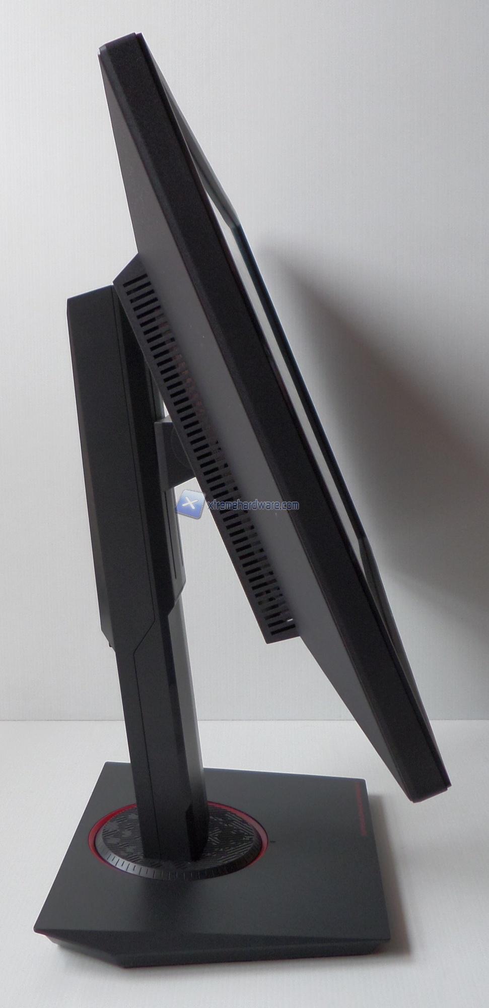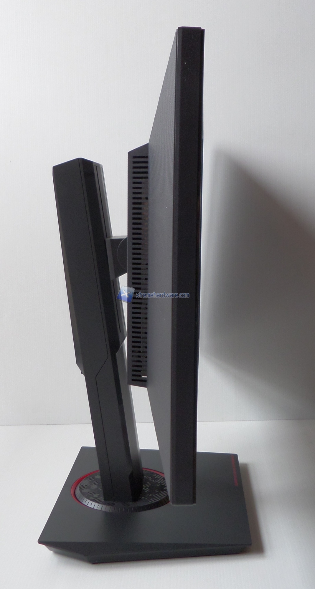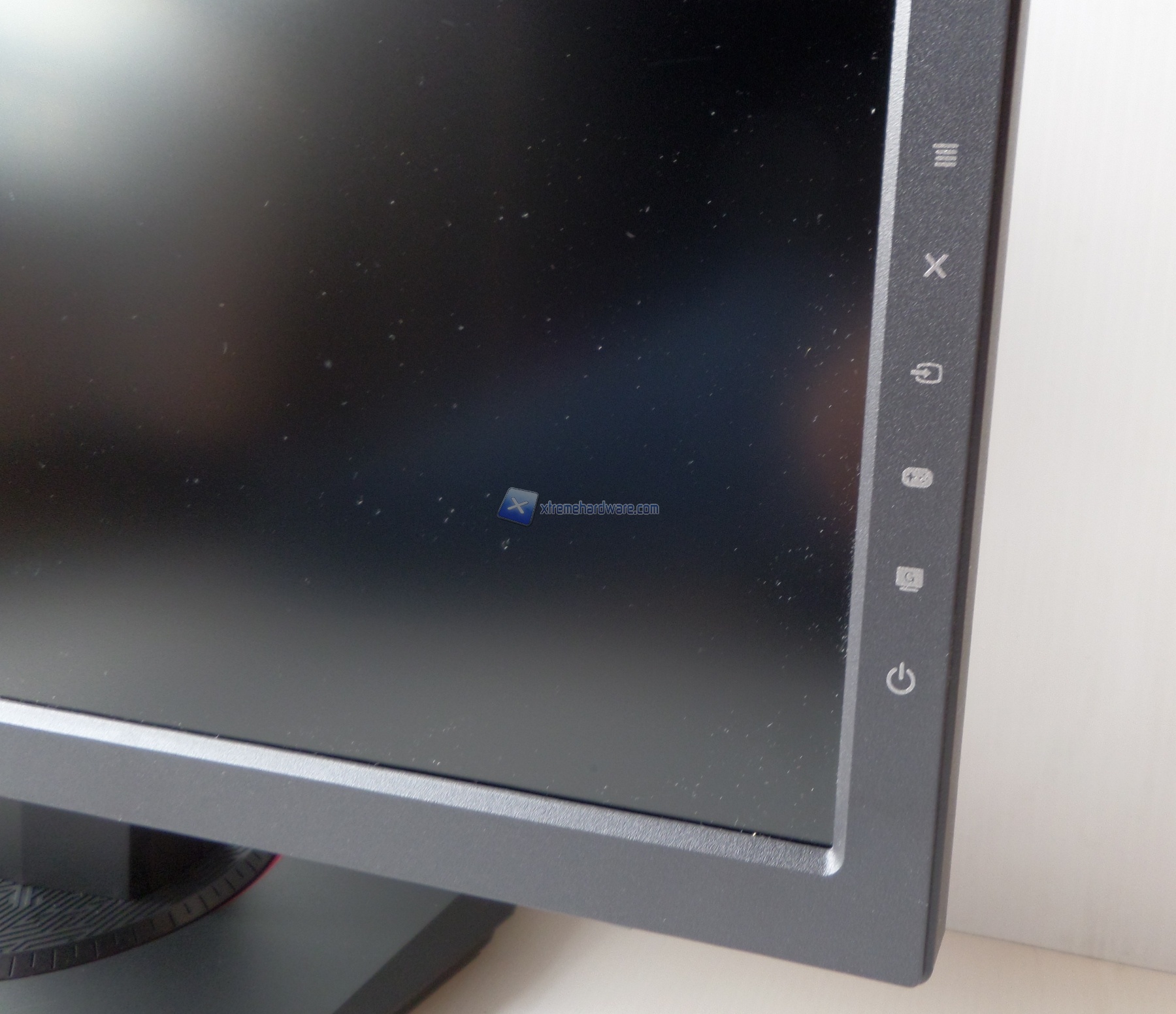 Sulla base, la quale non presenta LED, vi sono riportati dei segni per poter riposizionare il monitor in posizione perfettamente frontale.