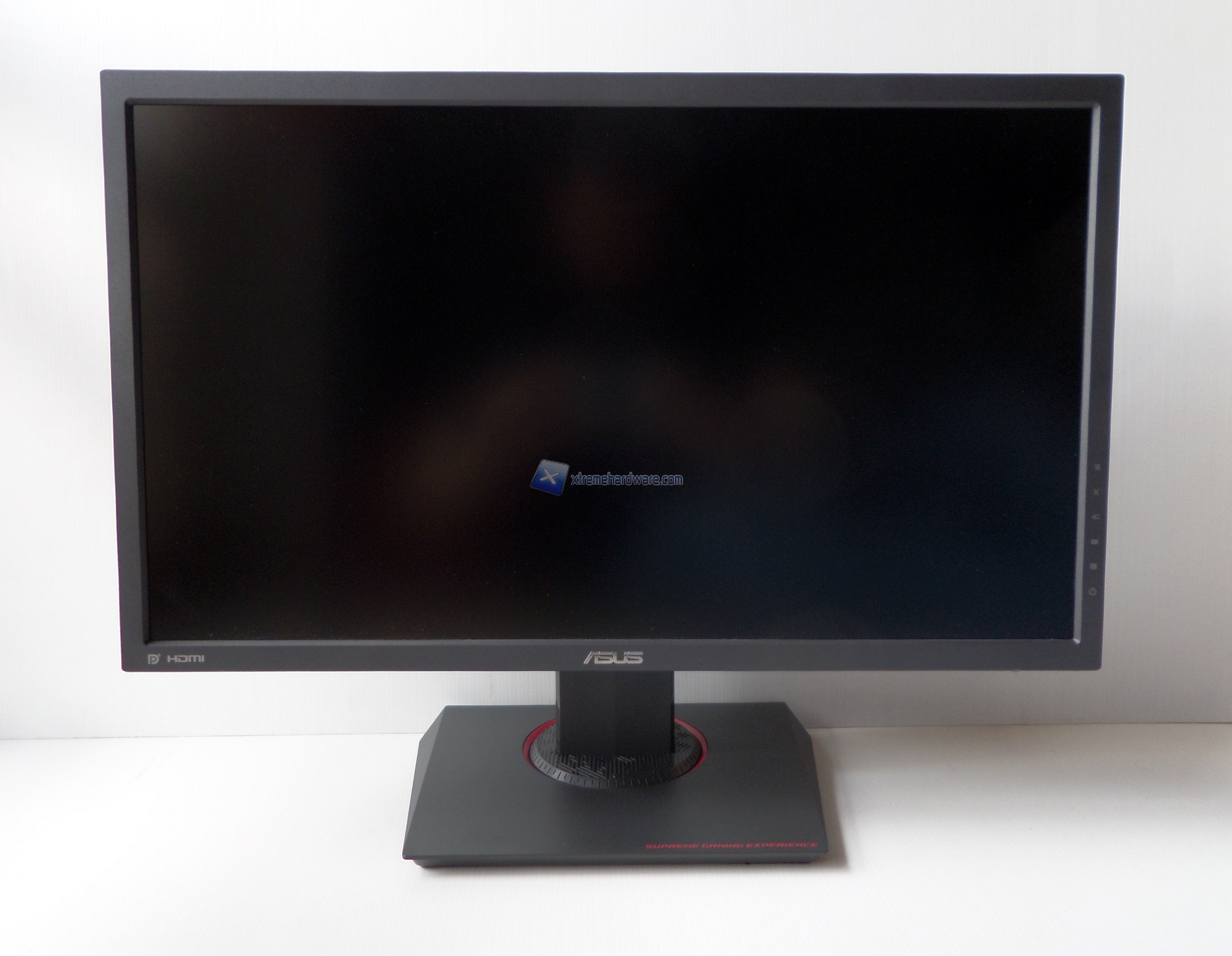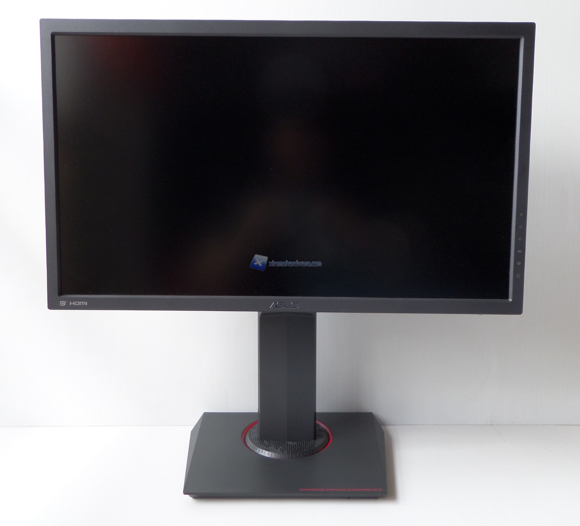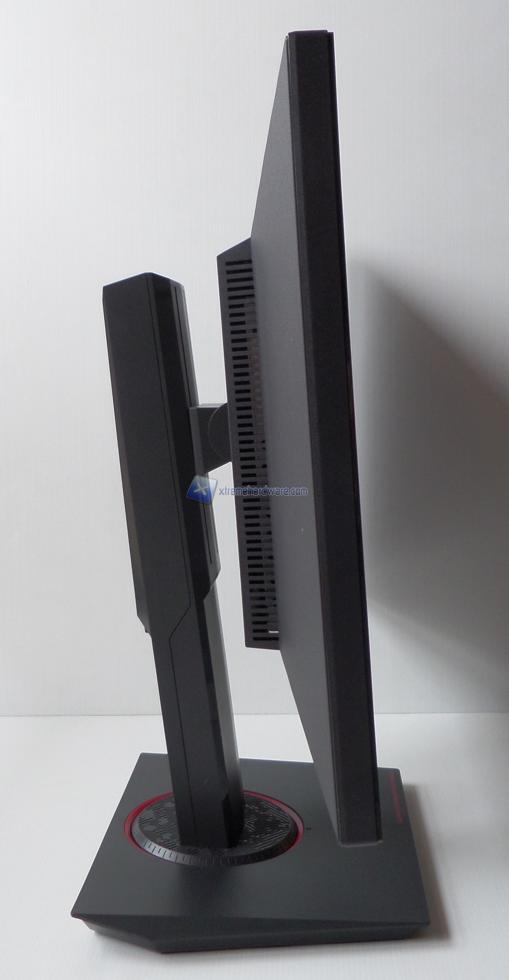 Sulla base, la quale non presenta LED, vi sono riportati dei segni per poter riposizionare il monitor in posizione perfettamente frontale.