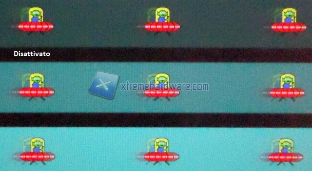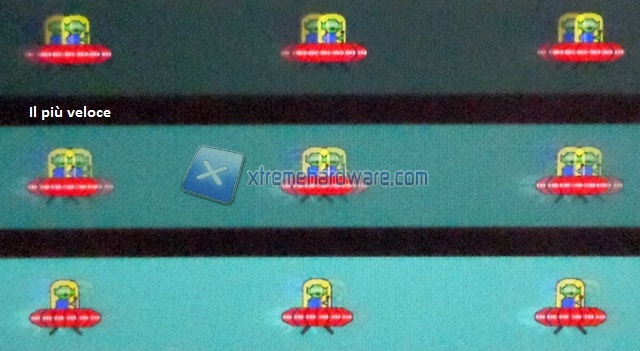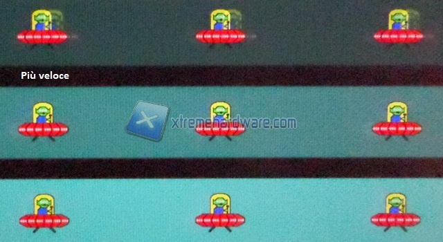 Il setting che restituisce il response migliore è quello chiamato "più veloce"; il comportamento non è affatto male per un monitor che non è indirizzato a questo scopo. L'opzione più estrema genera un elevato overshoot di segnale con la conseguente manifestazione del reverse ghost.