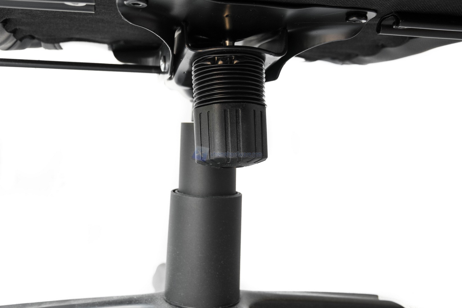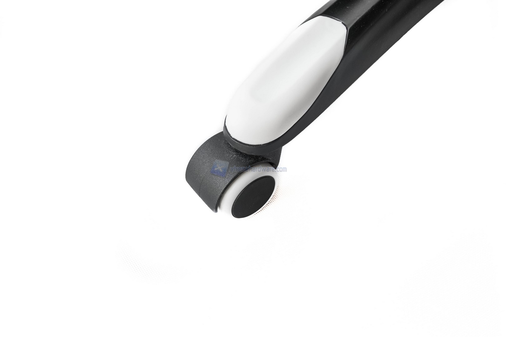 Infine parliamo della struttura di supporto composta da: pistone, gambe e ruote. Il pistone ha un’ampia corsa permettendoci di tarare l’altezza, inoltre durante l’utilizzo è silenzioso e lineare nella regolazione. Gambe e ruote garantiscono un carico massimo di 150 Kg. Entrambe sono realizzate in plastica dura (avremmo preferito fossero state realizzate in metallo), inoltre le ruote non presentano lo stesso diametro visto sulla X-Fighter, infatti misurano “solamente” 55mm a fronte dei 65mm della sorella maggiore, il che sfocerà in una maggiore difficoltà di movimento su tappeti e simili, i quali verranno inevitabilmente trascinati.