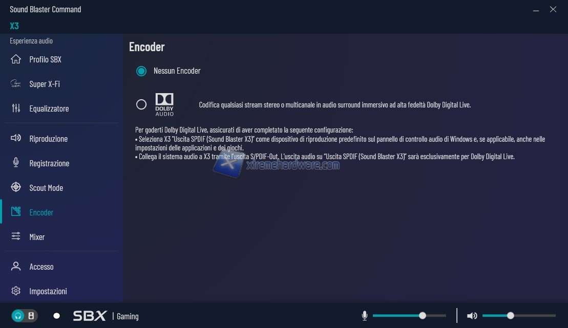 Menu ‘’Mixer’’ che come suggerisce il nome permette di regolare l’audio di ogni singola uscita/entrata della scheda Sound Blaster X3.