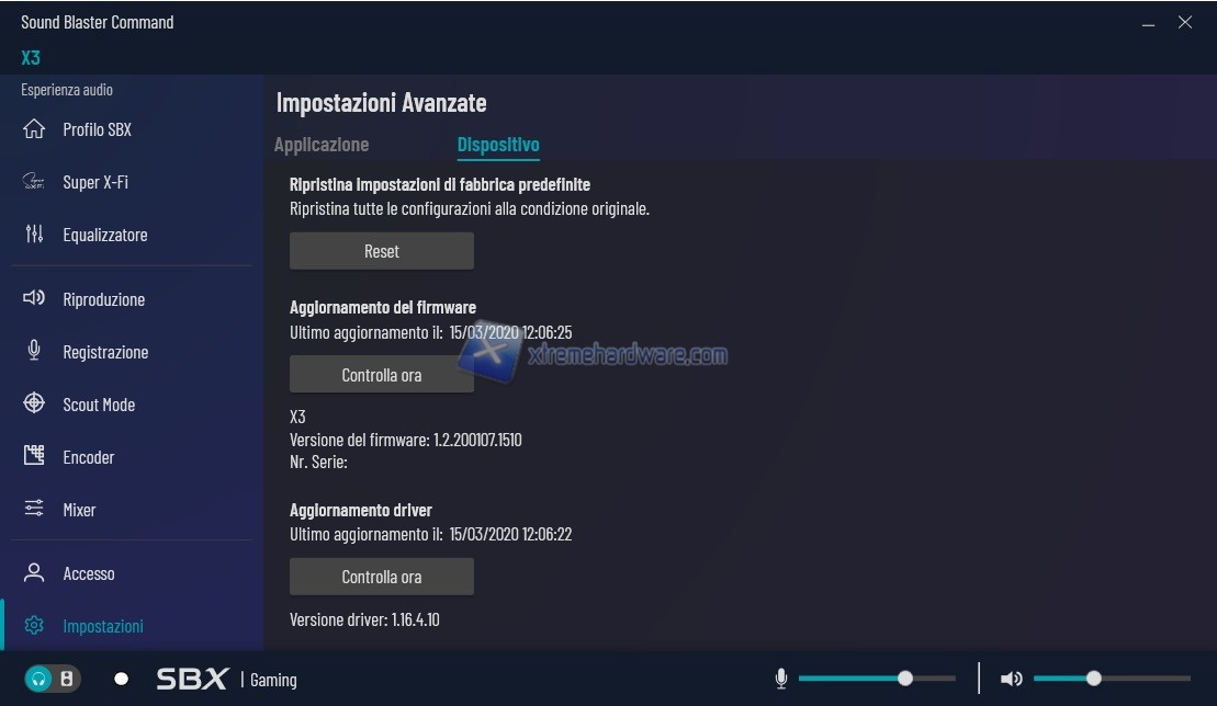 Creative nel corso degli anni non ha solo migliorato e ampliato la propria gamma di prodotti Hardware ma ha sviluppato e migliorato anche il supporto e la gestione Software. La scheda audio esterna Sound Blaster X3 per poter garantire una nutrita serie di impostazioni e personalizzazioni sonora ha bisogno di un software di gestione. Tale software si chiama Sound Blaster Command. Un software davvero semplice e a mio modo di vedere, per un utilizzo intermedio/semiprofessionale, ottimo e completo. Il software di gestione una volta installato sul proprio PC mette a disposizione tante funzioni con cui poter personalizzare al meglio la scheda audio e indirettamente la qualità sonora con cui e attraverso cuffie o altoparlanti saggiare della qualità Creative e in questo particolar modo della nuova tecnologia Super X-FI.