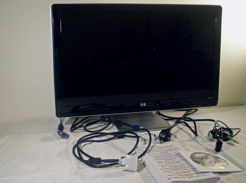 Il monitor è coperto da un foglio plastificato, dove sono impresse delle semplici istruzioni con immagini per il suo montaggio. I cavi VGA e DVI presenti nella scatola sono dotati di un tappo proteggere le uscite video.