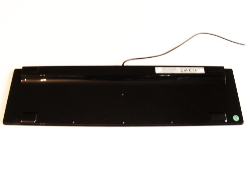 La parte posteriore è caratterizzata da una superficie liscia completamente nera corredata da 4 gommini che impediscono alla tastiera di scivolare.