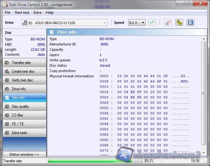 Abbiamo utilizzato Optdrive Control 1.50 per verificare tutte le caratteristiche del lettore come potete vedere qui di seguito: