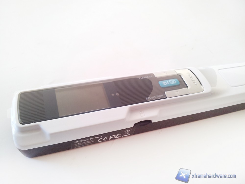 L'IRIScan Book 3 si presenta sottoforma di una "barra" di soli 2,2 x 25,7 x 3,5 cm, si può quindi sin da subito apprezzare l'estrema trasportabilità di tale periferica che potrà tranquillamente essere riposta all'interno di una borsa per PC. La parte superiore è caratterizzata da una colorazione bianca, la scritta IRIScan Book alla destra e un piccolo display LCD a colori e 4 pulsanti di funzione sulla destra.