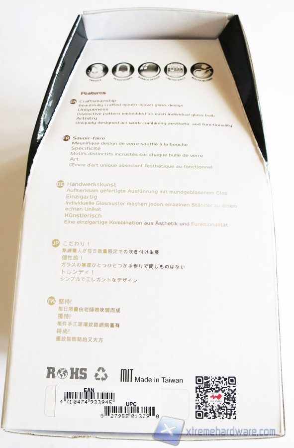 Ai lati troviamo ulteriori caratteristiche ed informazioni in varie lingue di cui non è presente l’italiano.