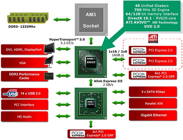 Con l’introduzione del modello 6 core AMD rinnova la propria gamma di chipset per sistemi desktop. Fanno il debutto le schede madri con il nuovo Northbridge e Southbridge, appartenenti alla serie 800.