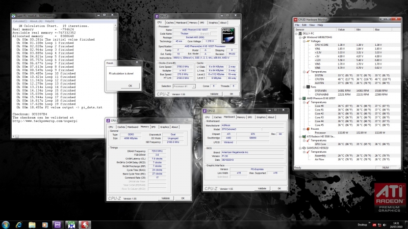Il processore AMD Phenom II X6 1055T si è dimostrato abbastanza tollerante all’overclock. Senza problemi ci siamo spinti fino a circa 3.8GHz ad aria (OC 35% circa), impostando un bus di 270MHz. Per mantenere la stabilità a quella frequenza è stato necessario applicare un vcore di 1.37v. In questa condizione siamo riusciti a chiudere tutti i bench sintetici, registrando un buon impatto sulle prestazioni generali del sistema. Le temperature sono lievitate soltanto di pochi gradi, mantenendosi comunque a livelli più che accettabili.