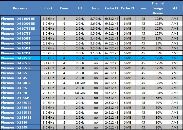 Come già accennato nella pagina introduttiva, il Phenom II X4 975 appartiene alla famiglia Deneb, avente un processo produttivo a 45nm ed ovviamente compatibile con schede madri aventi socket AM2+ e AM3.