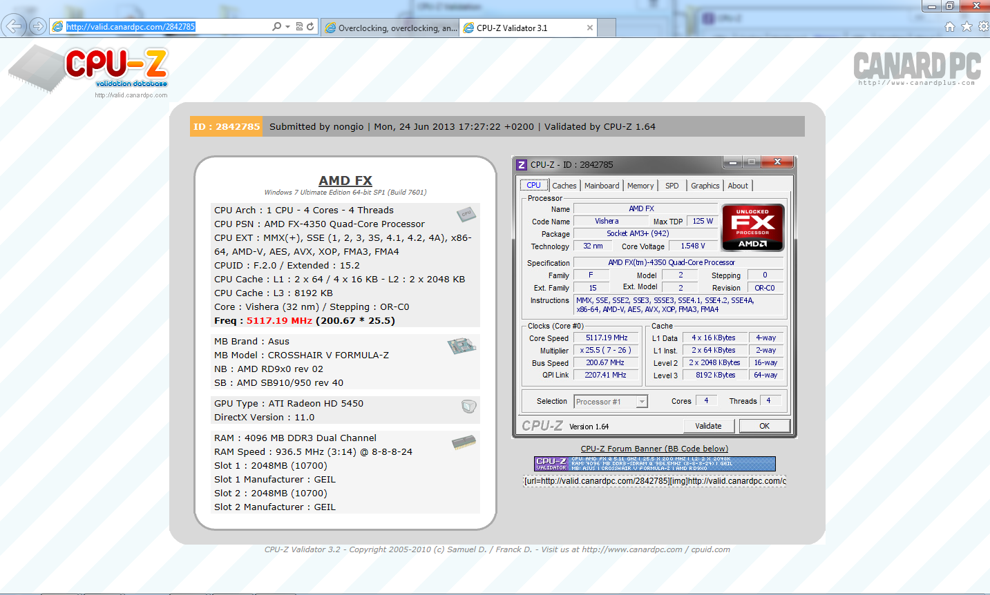 5117.19MHz è un risultato migliore di quello registrato dall'FX-6350; le performance non risultano essere comunque strabilianti ma siamo passati da 3.62 punti al Cinebench @ default a 4.37 @ 5117.24MHz.