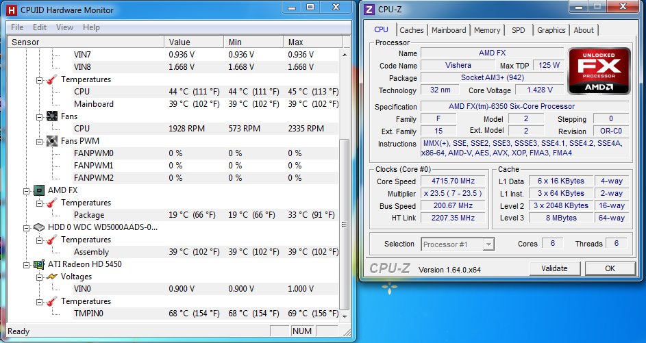 Come abbiamo detto, l'FX-6350 parte da una frequenza base di 3.9 GHz e raggiunge i 4.2 GHz in modalità Turbo Core.