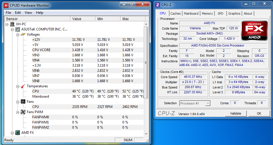L'AMD FX-4350 si è comportato meglio in overclock del fratello maggiore costringendo l'utente ad aumentare il voltaggio sulla CPU a frequenze più alte.