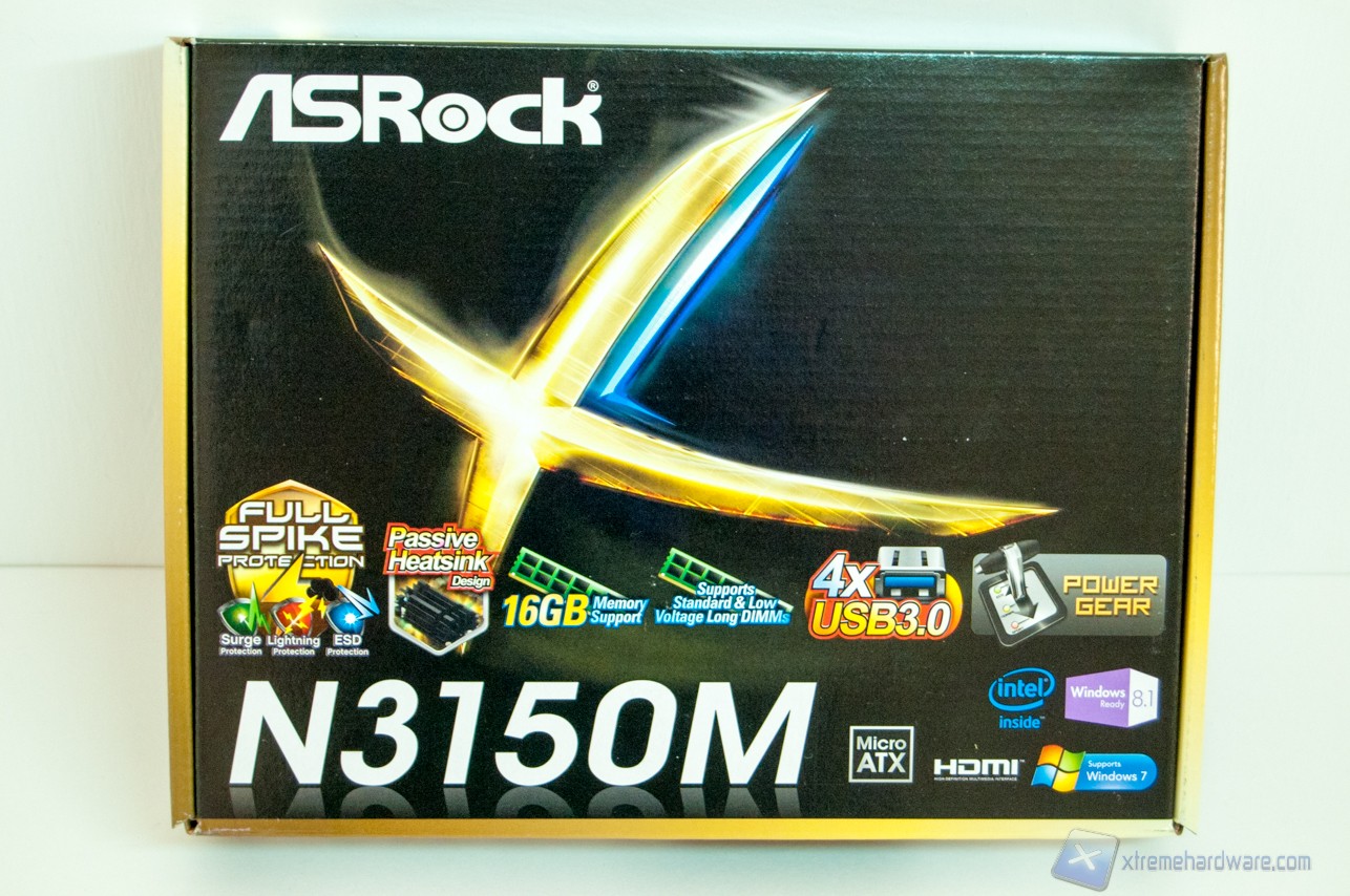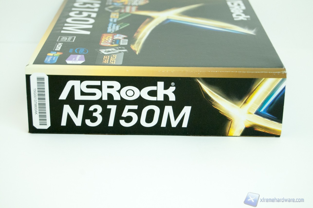La confezione dell'ASRock N3150M è nera bordata oro ed è ricca di informazioni utili all'acquirente.