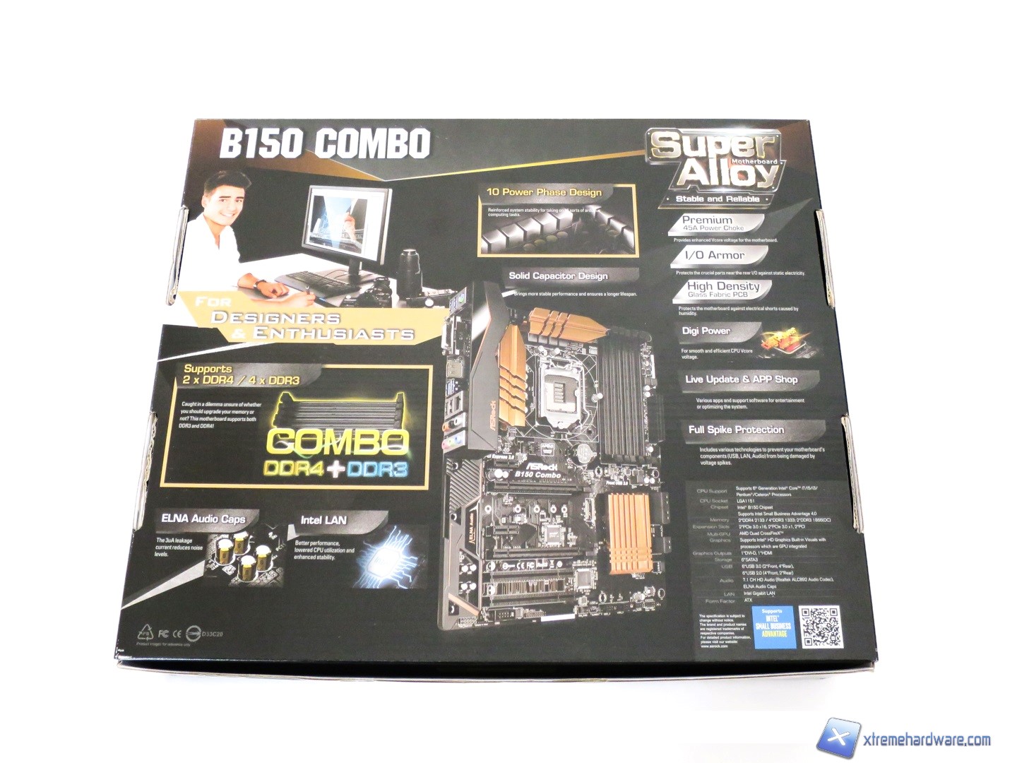 La ASRock B150 Combo ci giungerà in una classica confezione di cartone di medie dimensioni con una colorazione nera dove vengono riportate le informazioni necessarie ad identificare il prodotto e le caratteristiche principali.