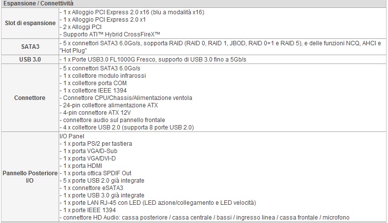 Nel retro della scheda troviamo una porta USB 3.0 gestita dal chip FL1000G Fresco con supporto fino a 5Gb/s, ed altre 5 porte USB 2.0, mentre sul PCB troviamo altre 4 porte USB 2.0 fino ad un massimo di 8 periferiche collegabili, ricordiamo inoltre che la connessione tra il chip FRESCO e il southbridge SB850 avviene tramite una connessione SATA, motivo per cui troviamo disponibili 5 porte SATA 6 GB/s nella scheda madre prodotta da ASRock.
