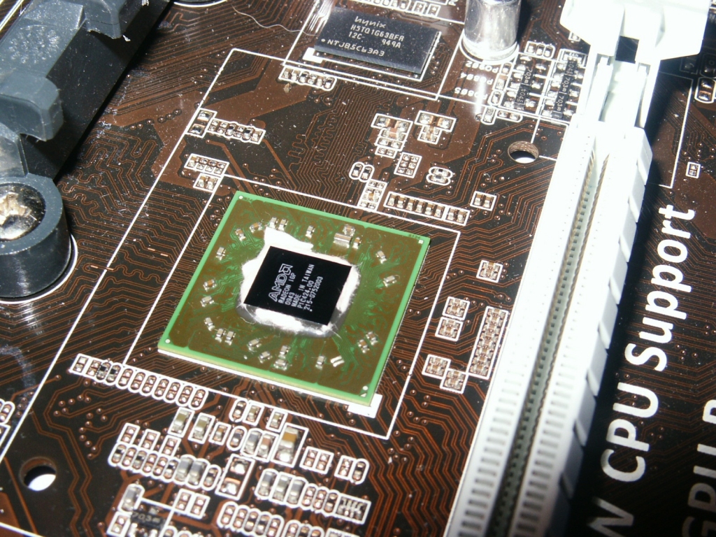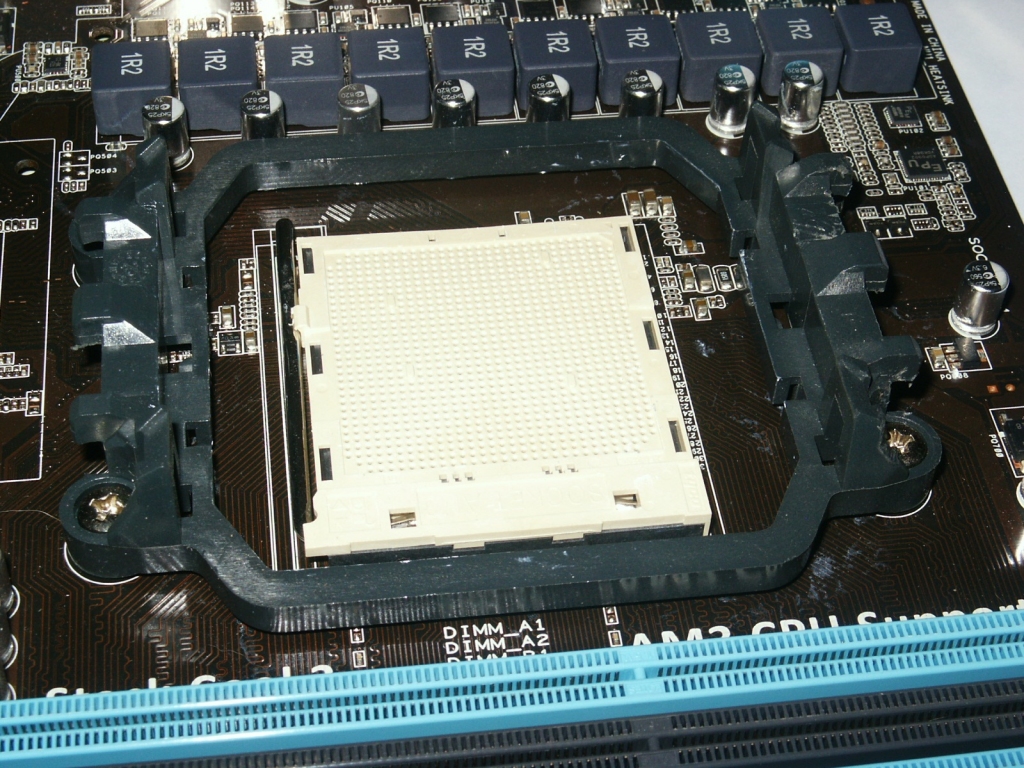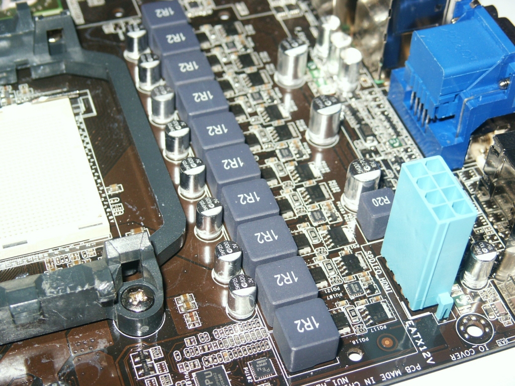 La zona socket AM3 è abbastanza pulita, unica nota negativa è la distanza con gli slot ram, non molto generosa. In caso di utilizzo di dissipatori per CPU particolarmente voluminosi, infatti, potrebbe essere compromesso l’utilizzo del primo slot ram, specialmente se si usano moduli di memoria con heatsink ad alto profilo.