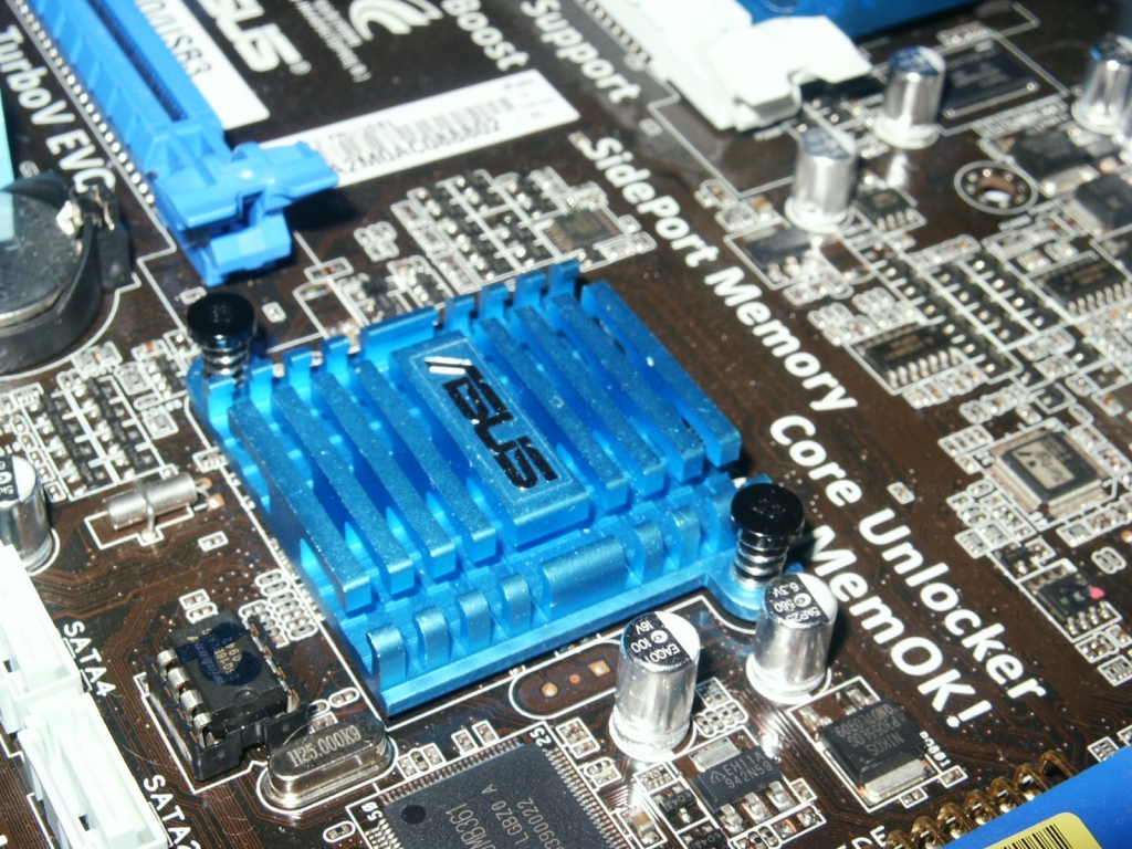 Rimuovendo il dissipatore centrale troviamo il chipset AMD 890GX. Poco distante possiamo scorgere un chip di memoria Hynix DDR3 da 128MB, dedicato alla grafica integrata. Grazie alla tecnologia Unified Memory Access (UMA), questo quantitativo di memoria può essere incrementato, appoggiandosi direttamente alla ram di sistema, di altri 512MB. La M4A89GTD Pro/USB3 supporta inoltre una tecnologia proprietaria ASUS denominata GPU Boost, grazie alla quale è possibile incrementare, in modo semplice e veloce, da BIOS o da Sistema Operativo, con l’apposita utility, le performance grafiche.