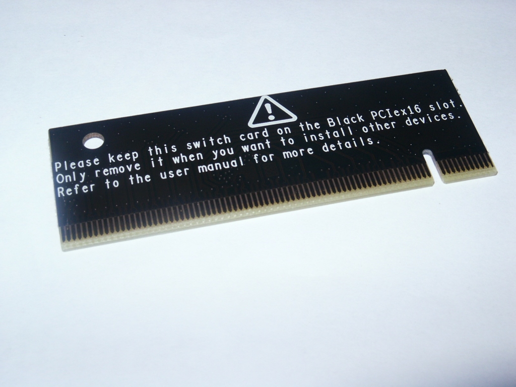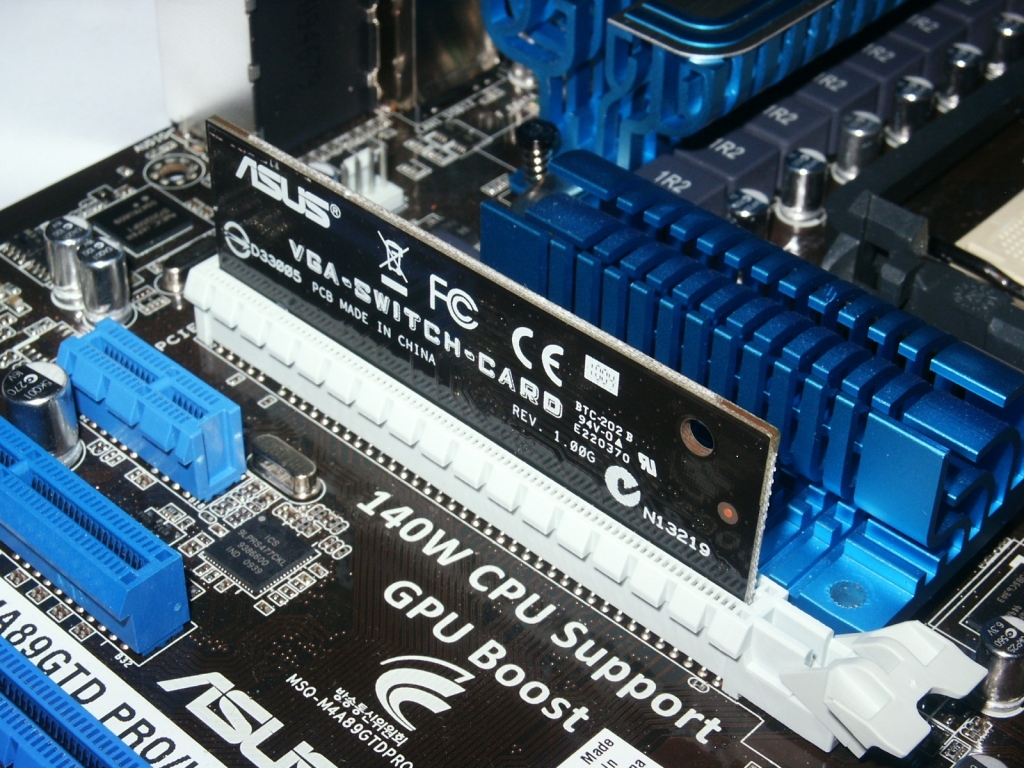 Le possibilità di espansione sono garantite da uno slot PCI-E 1x, uno PCI-E 4x, due PCI e due PCI-E 16x. In caso di configurazioni multi vga questi lavoreranno con segnale elettrico 8x/8x. Insieme alla scheda è fornito uno switch meccanico denominato “VGA SWITCH CARD”. Nel caso di utilizzo di una sola scheda grafica, questa funzionerà a banda piena 16x soltanto se tale switch sarà inserito nel primo slot PCI-E 16x di colore bianco. Notiamo inoltre che questi sono abbastanza distanti tra loro permettendo quindi un miglior ricircolo d’aria tra le due eventuali schede grafiche.
