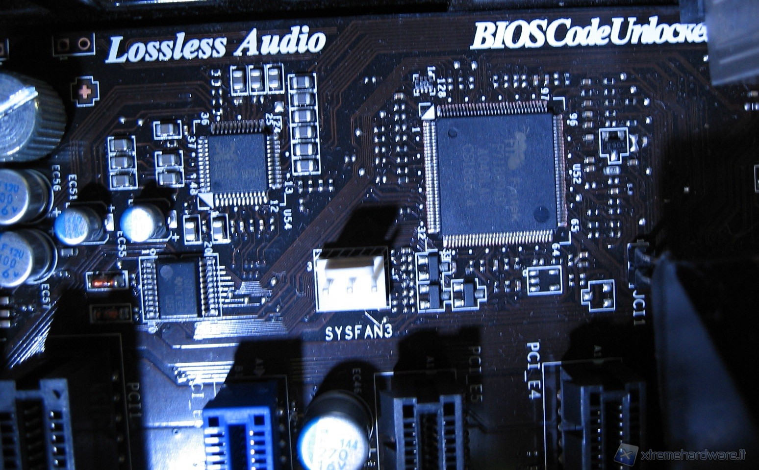 Sulla destra notiamo il chip Fintek F71889AD dedicato al monitoraggio hardware di tensioni e temperature nonché di ausilio al tool OC Genie II.
