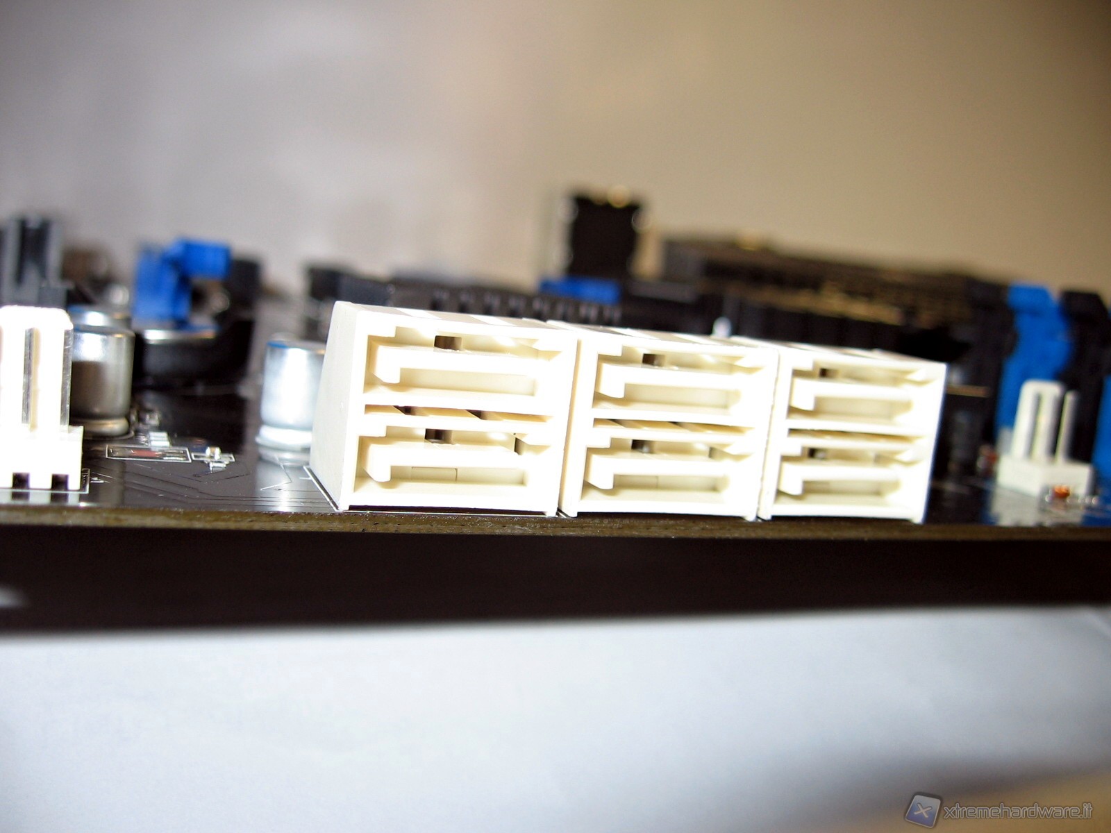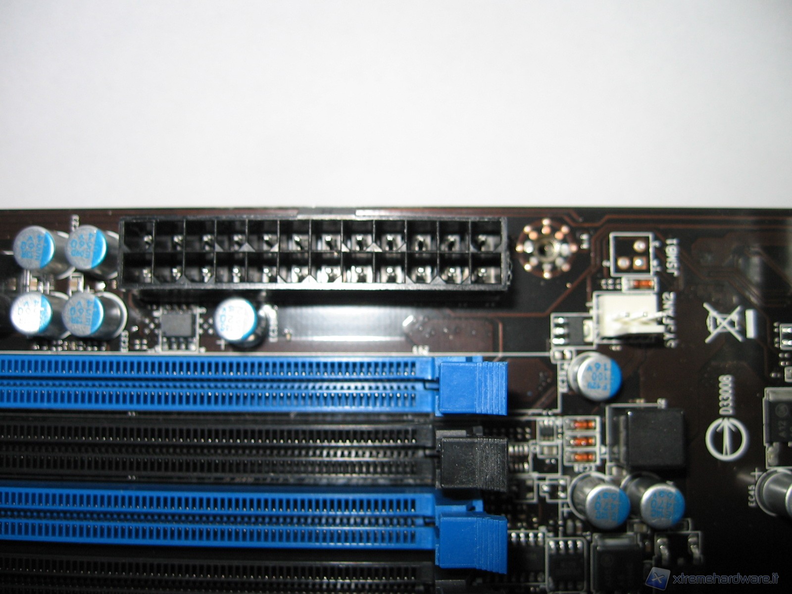 A garanzia della piena stabilità, che andremo a verificare, e un’erogazione dell’amperaggio sufficientemente adeguata richiesta dalle attuali CPU a 45nm e future a 32nm, possiamo evidenziare in foto a destra il connettore d’attacco nero ad 8 pin per l’alimentazione supplementare del processore.