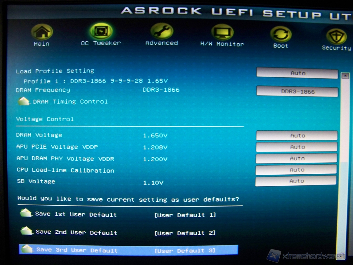 Spostiamoci nel menù accanto, “OC Tweak” che ci permette di “giocare” con frequenze e voltaggi dell’intero sistema.