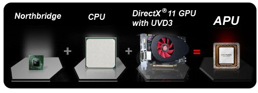 La nuova generazione di APU prodotte da AMD combina la potenza del processore (CPU) con quella della scheda video (GPU) tutto in un unico chip, in grado di riprodurre video HD e applicativi utilizzanti le ultime DirectX 11.