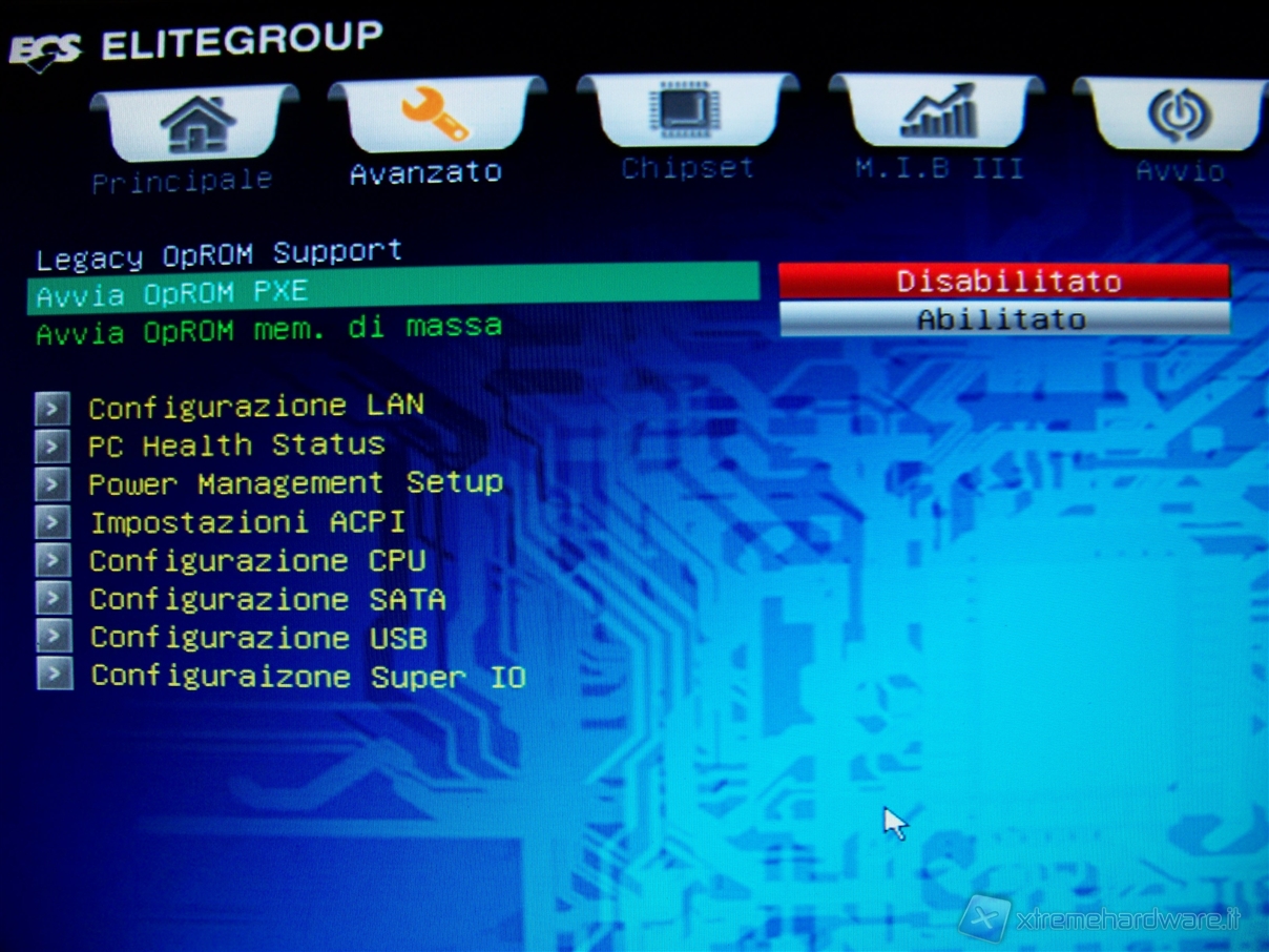 Questo menù permette l'abilitazione della scheda di rete LAN onboard.