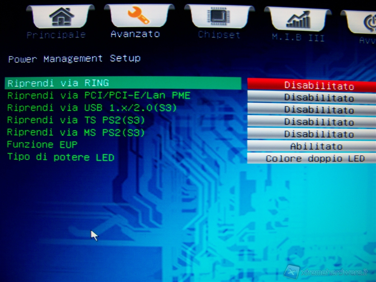 Nel menù “Power Management Setup” abbiamo la possibilità di impostare le modalità di avvio del sistema e di “resume” del sistema stesso.