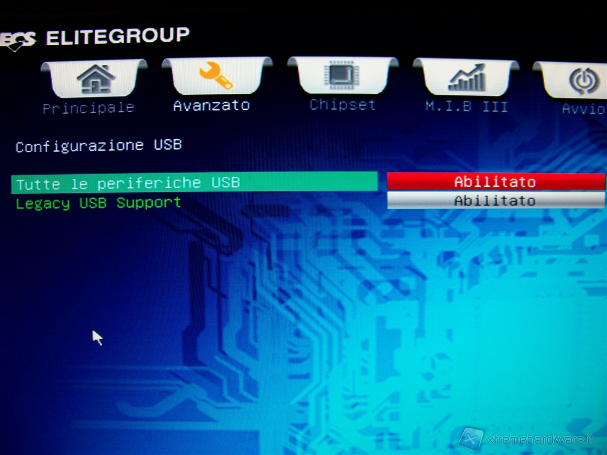 Tramite questo menù possiamo abilitare/disabilitare il supporto USB della nostra ECS A55F-A2.