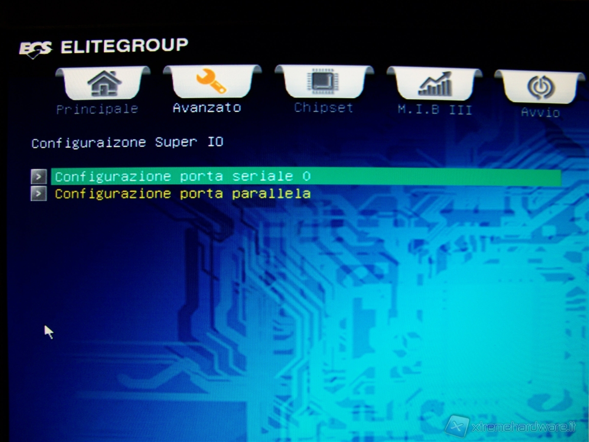 In “Configurazione Super IO” abbiamo la possibilità di modificare i parametri relativi alla porta seriale o parallela.