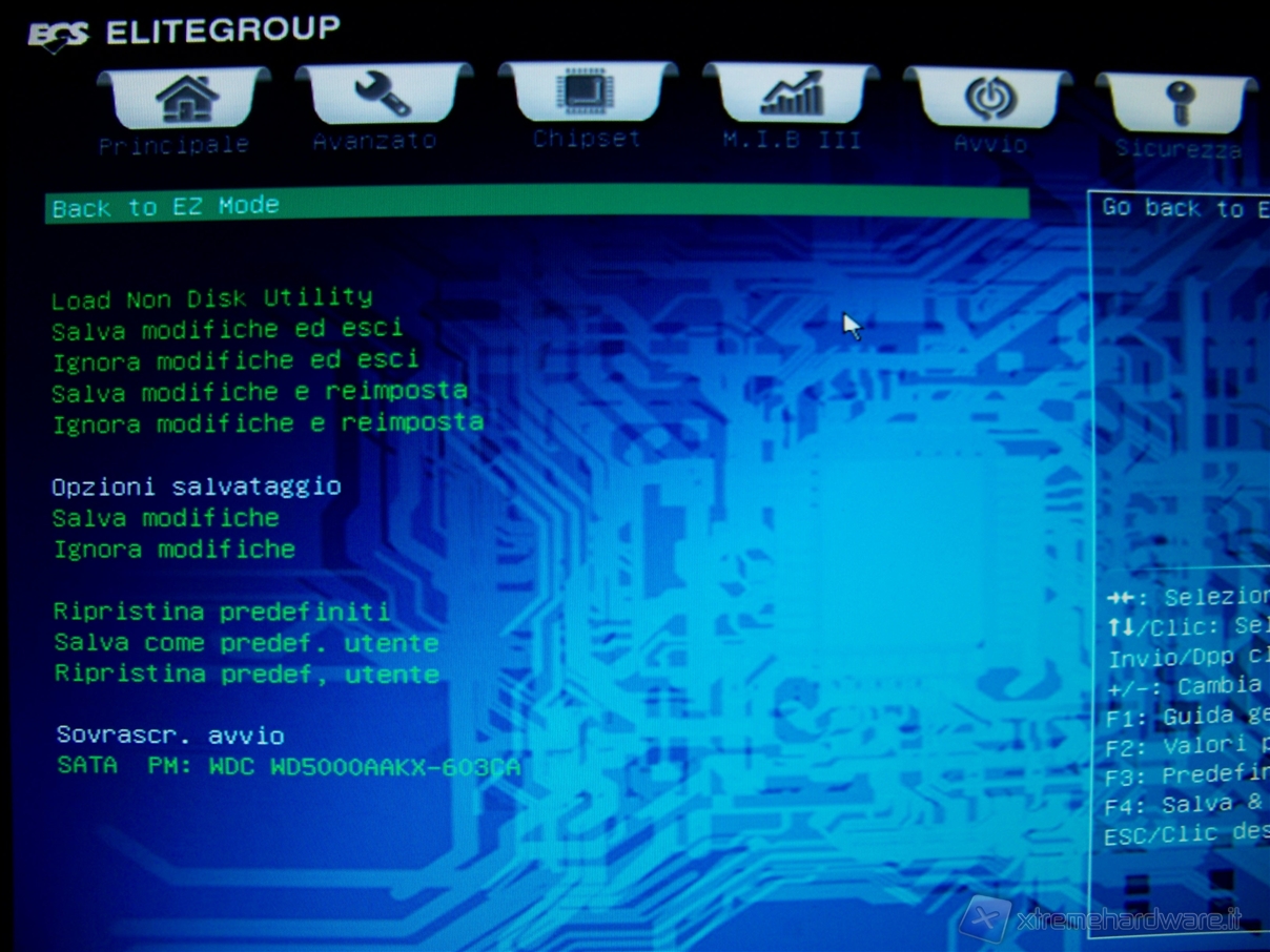 Notiamo la piacevole interfaccia grafica blu con le icone per identificare le varie sezioni dell'UEFI BIOS.