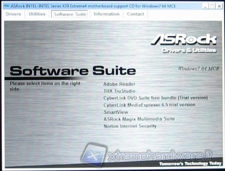 Tra le utility presenti nel DVD ASRock Extreme Tuning Utility si rivela particolarmente utile perché permette di cambiare i parametri di frequenza e tensione direttamente dal sistema operativo senza bisogno di riavviare il PC. Anche il software in dotazione è abbondante ed orientato al mondo del multimediale.