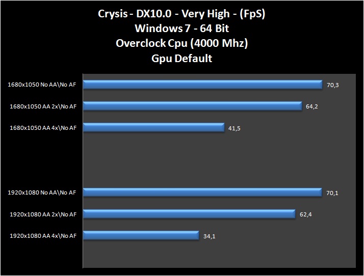 La scheda video fa girare in maniera soddisfacente giochi come “Crysis" e "Crysis Warhead”, anche applicando filtri. Il tutto in modalità High e in DirectX10. Non se la cava niente male anche impostando la modalità VeryHigh, anche se il calo dei Frame si avverte, specialmente applicando i filtri.