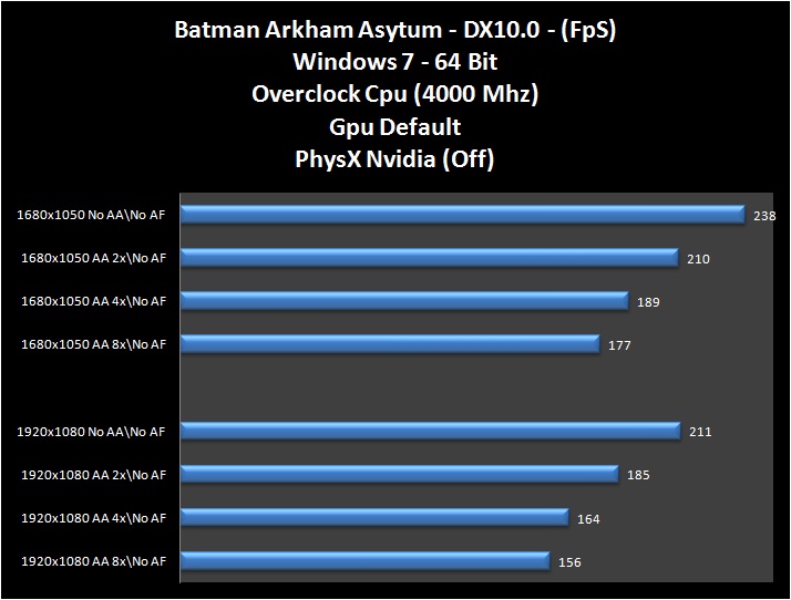 Il gioco Batman Arkham Asylum, che supporta la tecnologia PhysX di Nvidia, si è comportato decisamente bene. Certo, il calo c’è stato attivando PhysX, ma nel complesso il risultato è stato buono.