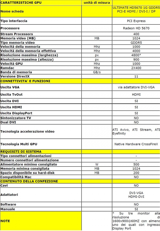 In questa immagine mostriamo le caratteristiche della Sapphire Radeon HD 5670.