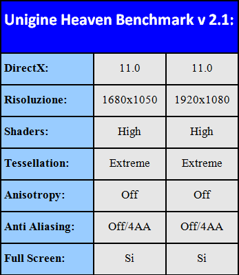 Il benchmark è stato testato in DX11 con Tessellation Extreme. A seguire le impostazioni nel dettaglio: